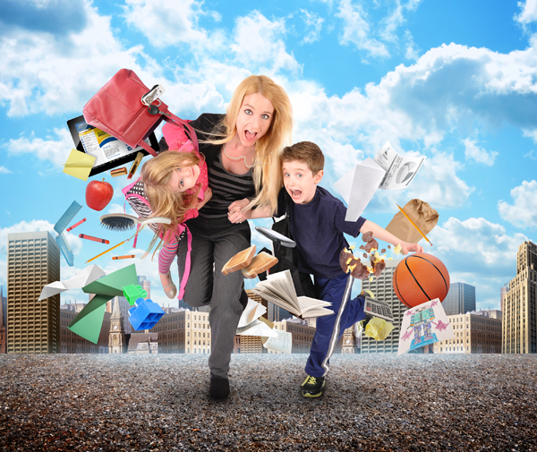 Η αργοπορημένη. Τη βλέπεις φεύγοντας απ’ το σχολείο να τρέχει σαν τρελή τραβώντας το παιδί από το χέρι, με τσάντες και σακίδια να ανεμίζουν, ενώ φωνάζει «Περιμένετε! Ερχόμαστε!» στον επιστάτη που κλείνει την πόρτα.