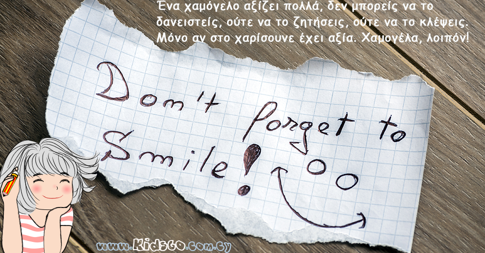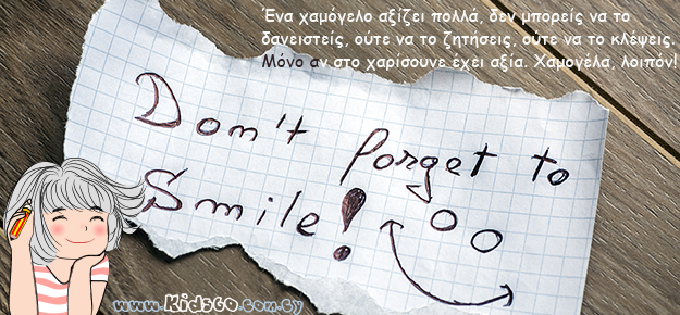 Ένα χαμόγελο αξίζει πολλά, δεν μπορείς να το δανειστείς, ούτε να το ζητήσεις, ούτε να το κλέψεις. Μόνο αν στο χαρίσουνε έχει αξία. Χαμογέλα, λοιπόν!