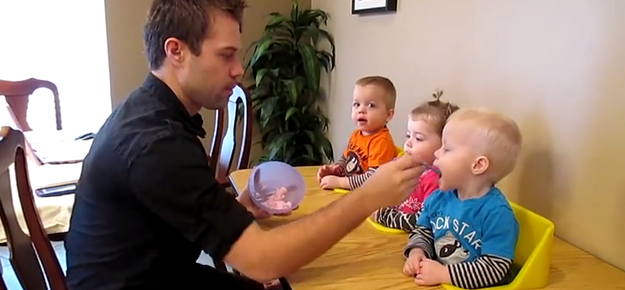 Αυτή η οικογένεια αποτελείται από δύο νεαρά αγόρια και τα μικρά τρίδυμα! Με τόσα πολλά μικρά παιδιά, δεν μπορεί να προκαλεί έκπληξη που αυτός ο μπαμπάς έγινε ειδικός στο θέμα.